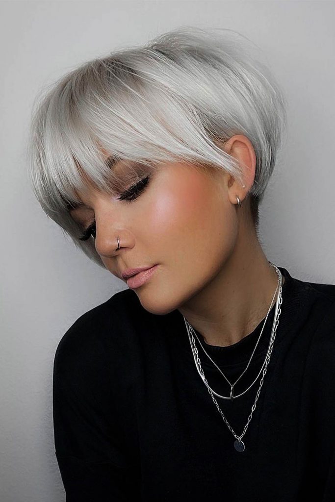 by @mila_kryshchykhinaThick and sharp layers look exceptional on trendy colors such as platinum, whitish, and silvery blonde. The best thing is, with such a cut, sweeping the hair to the side will be enough for a versatile style.